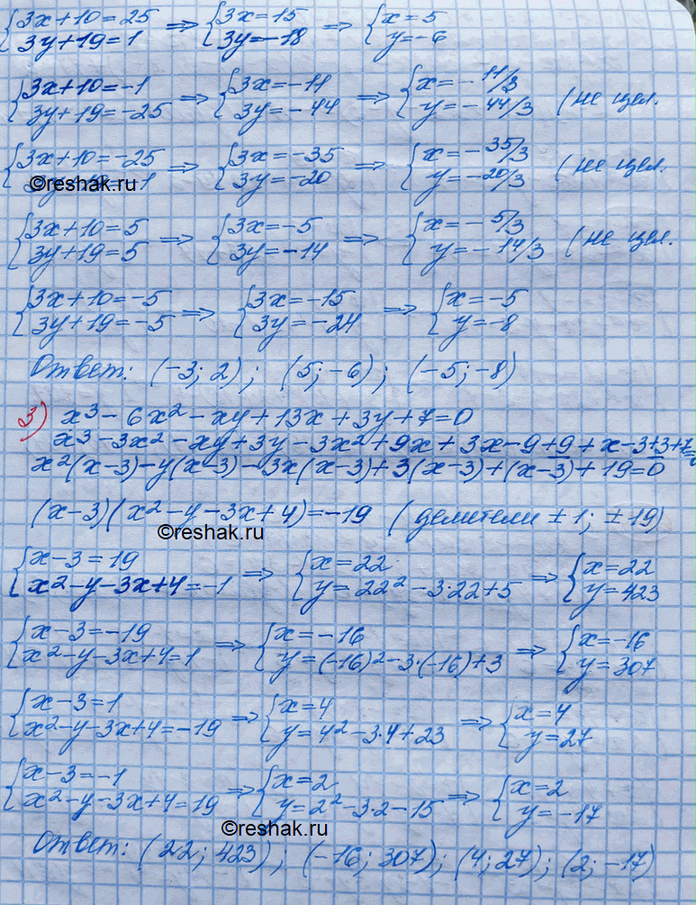 2) 3ху + 19х + 10у + 55 = 0;