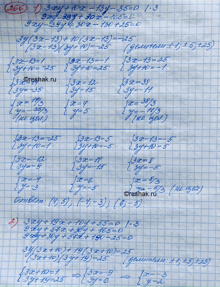 266. 1) 3ху + 10x - 13у - 35 = 0;