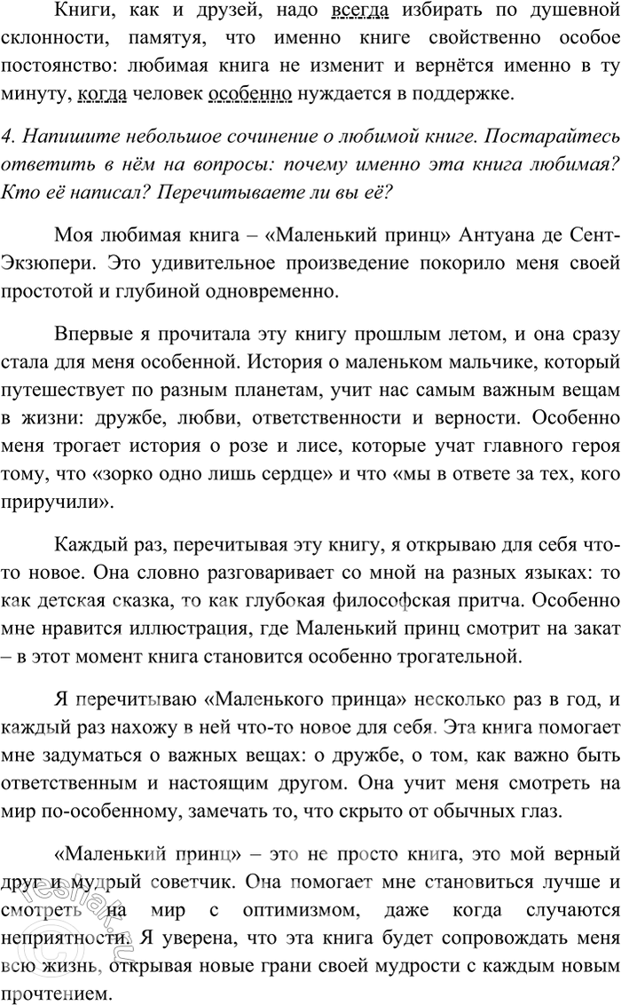 4. Напишите небольшое сочинение о любимой книге. Постарайтесь ответить в нём на вопросы: почему именно эта книга любимая? кто её написал? перечитываете ли вы её?