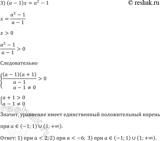 3) (а - 1)х = а^2 - 1 имеет единственный положительный корень?