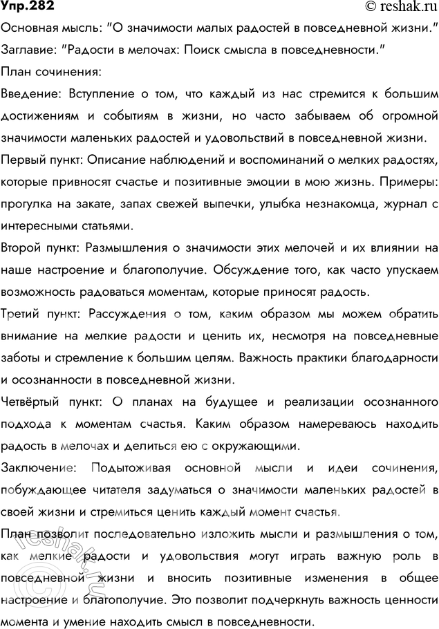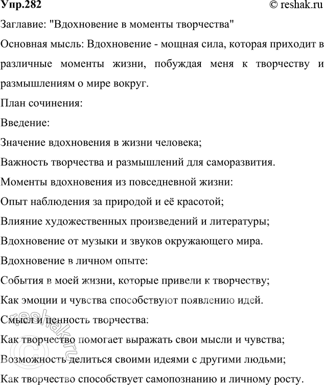 282. Сочинение. Тема свободная - «Если бы мне предложили написать, о чём я хочу» (о каком-либо событии в вашей жизни; о наблюдении за кем-либо или за чем-либо; о ваших размышлениях; о планах на будущее и т.д.).