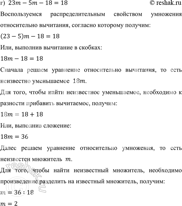 Сначала решаем уравнение относительно вычитания, то есть неизвестно уменьшаемое 18m.