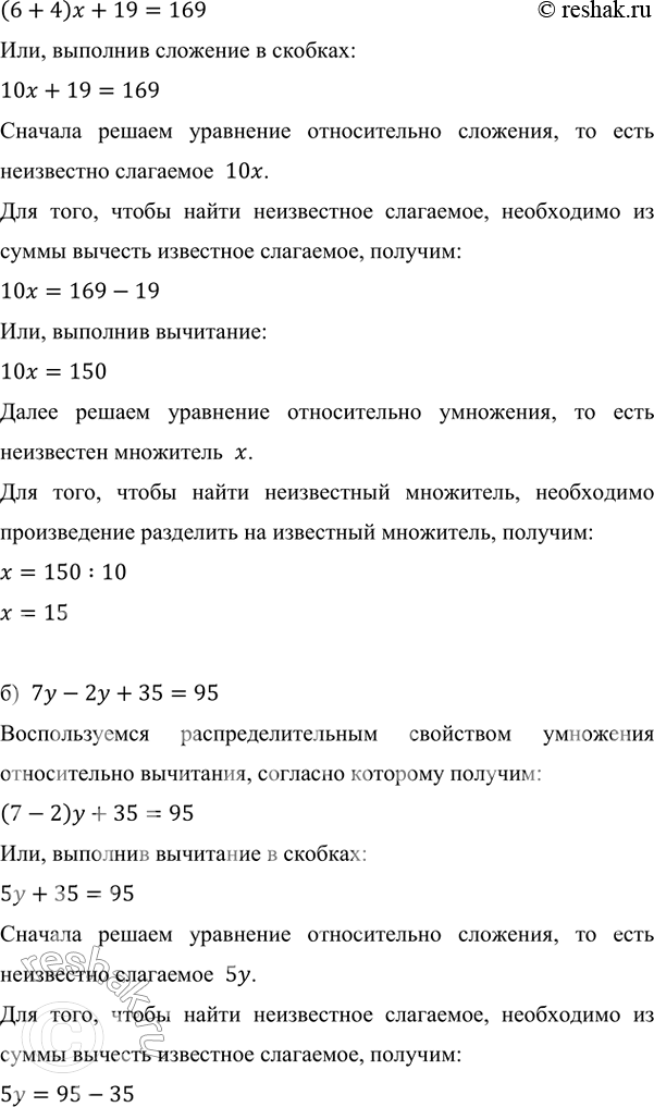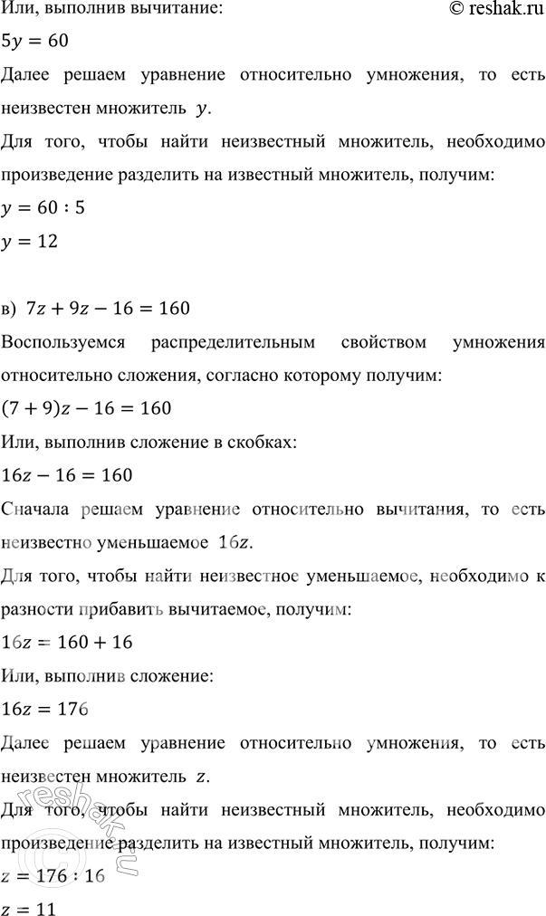 а) 6x + 4x + 19 = 169; в) 7z + 9z - 16 = 160;