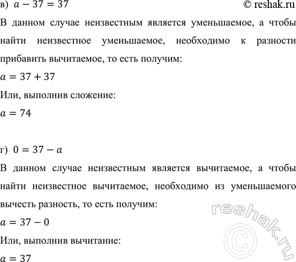 а) 37 = 37 + a; б) 37 - a = 37; в) a - 37 = 37; г) 0 = 37 - a.