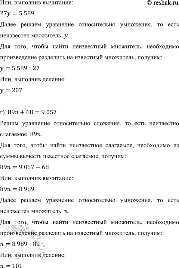 б) 34s - 68 = 68; г) 89n + 68 = 9057.
