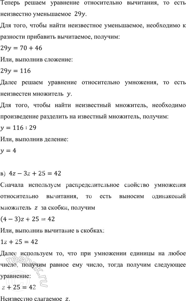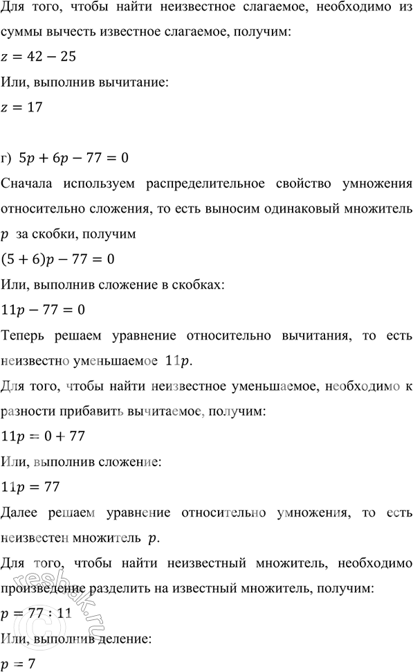 б) 11y + 18y - 46 = 70; г) 5p + 6p - 77 = 0.