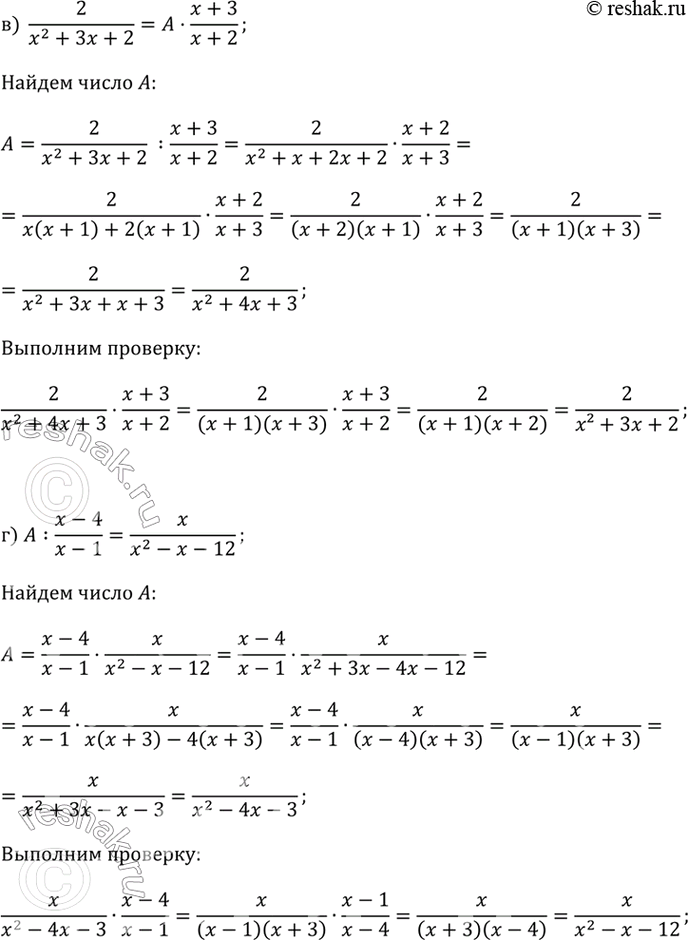 г) A : (x - 4)/(x - 1) = x/(x^2 - x - 12).