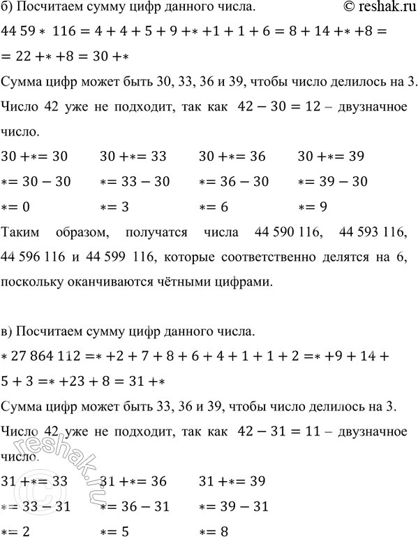 Какие цифры можно подставить вместо звёздочки, чтобы полученное число делилось на 6: а) 407 932 27*; б) 44 59*116; в) *27 864 112; г) 9*573 248?