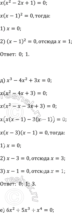 б) Зх + Зх^2 = 0; д) х^3 - 4х^2 + Зх = 0; з) х^3 + х = 2х;