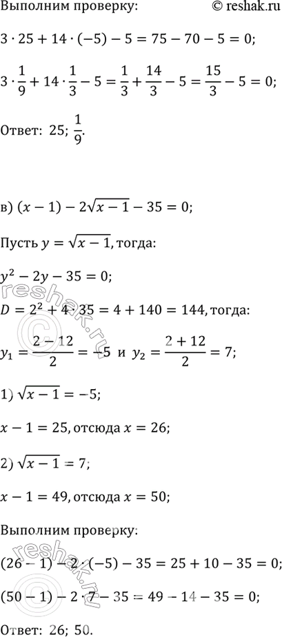 в) (x - 1) -2v(x - 1) - 35 = 0;