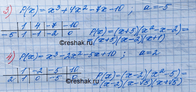 4) Р(х) = х3 - 2х2 - 5х + 10, а = 2.