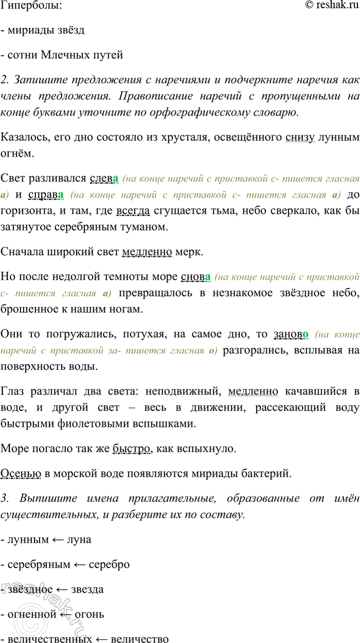 2. Запишите предложения с наречиями и подчеркните наречия как члены предложения. Правописание наречий с пропущенными на конце буквами уточните по орфографическому словарю.