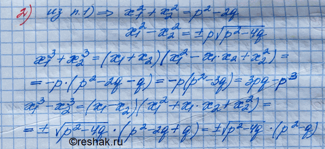 2) сумму и разность кубов корней уравнения х2 + рх + q = 0.