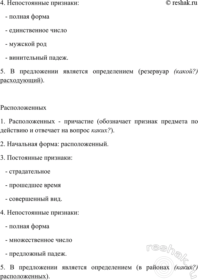1. Расположенных - причастие (обозначает признак предмета по действию и отвечает на вопрос каких?).