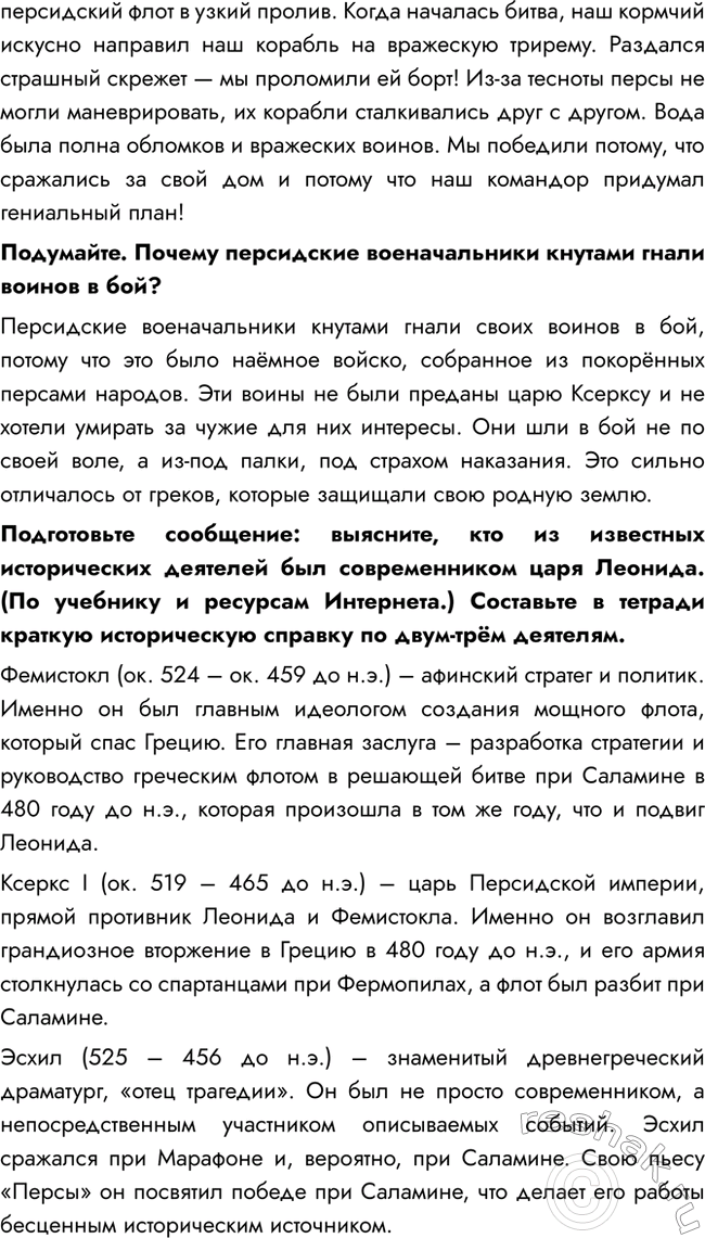 Составьте (в тетради) рассказ об одном из сражений греков с персами от имени участника этого сражения. В вашем рассказе должно быть указано не менее одной причинно-следственной связи.