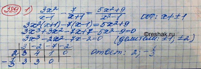 389. 1) 3x2/(x-1) - 7/(x+1) = (5x2+9)/(x2-1);