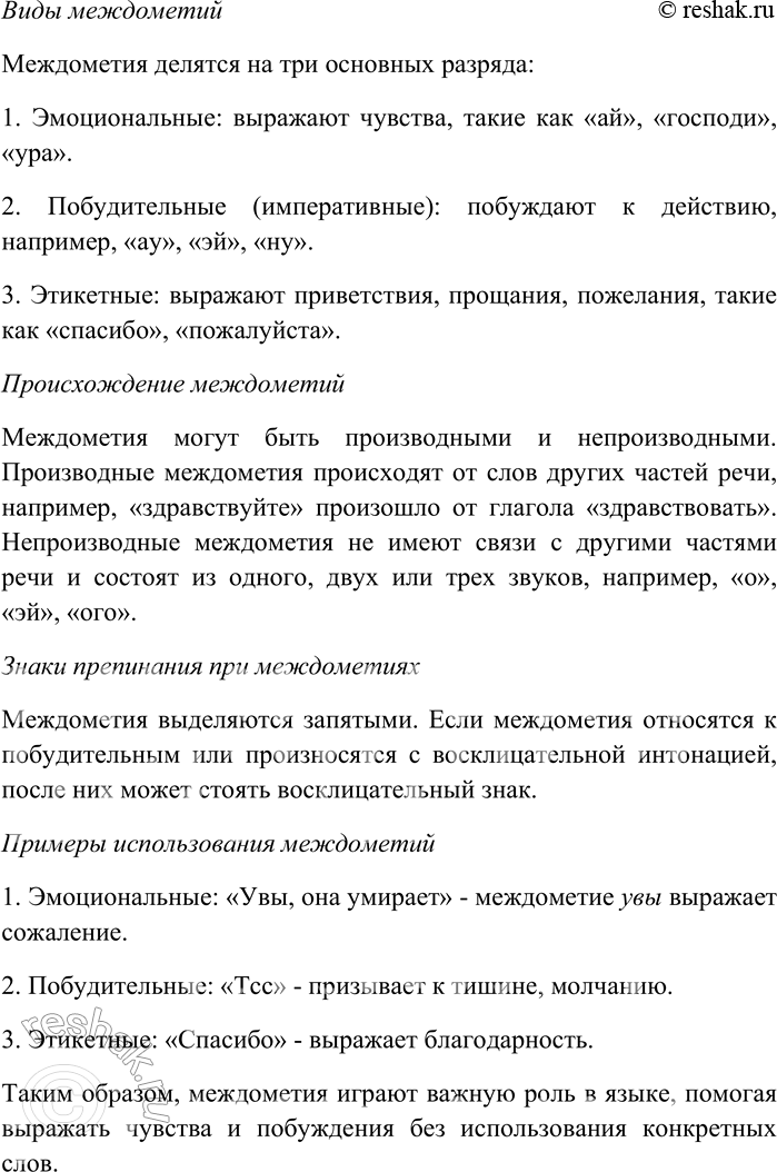 3. Отсутствие полной интеграции. В параграфе говорится, что междометия входят в систему частей речи, но стоят в ней изолированно. Это указывает на то, что авторы считают их уникальными и не полностью вписывающимися в традиционные категории частей речи.
