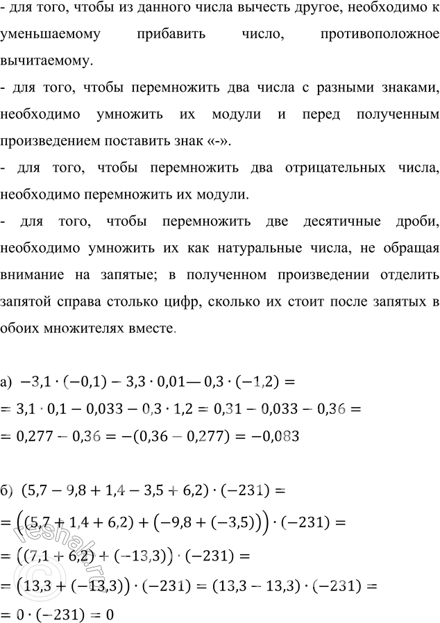 б) (5,7-9,8+1,4-3,5+6,2)•(-231)=((5,7+1,4+6,2)+(-9,8+(-3,5)))•(-231)=((7,1+6,2)+(-13,3))•(-231)=