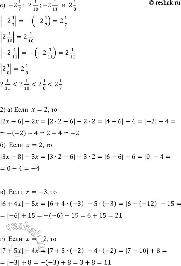 е) -2 1/7; 2 1/10;-2 1/11 и 2 1/8