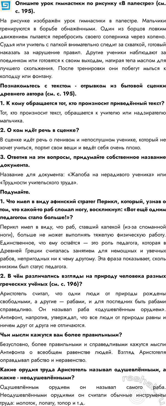 Познакомьтесь с текстом - отрывком из бытовой сценки древнего автора (см. с. 195).