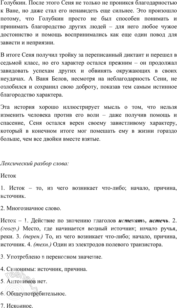 В итоге Сеня получил тройку за переписанный диктант и перешел в седьмой класс, но его характер остался прежним – он продолжал завидовать успехам других и обвинять окружающих в своих неудачах. А Ваня Белов, несмотря на неблагодарность Сени, не озлобился и сохранил свою доброту, показав тем самым истинное благородство характера.