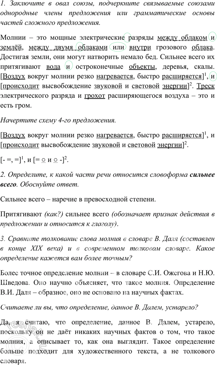 1. Заключите в овал союзы, подчеркните связываемые союзами однородные члены предложения или грамматические основы частей сложного предложения. Начертите схему 4-го предложения.