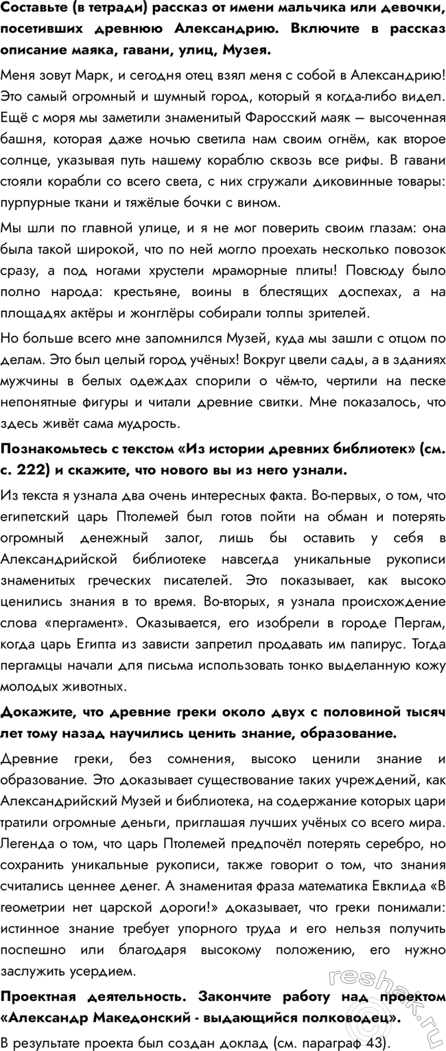 Составьте (в тетради) рассказ от имени мальчика или девочки, посетивших древнюю Александрию. Включите в рассказ описание маяка, гавани, улиц, Музея.