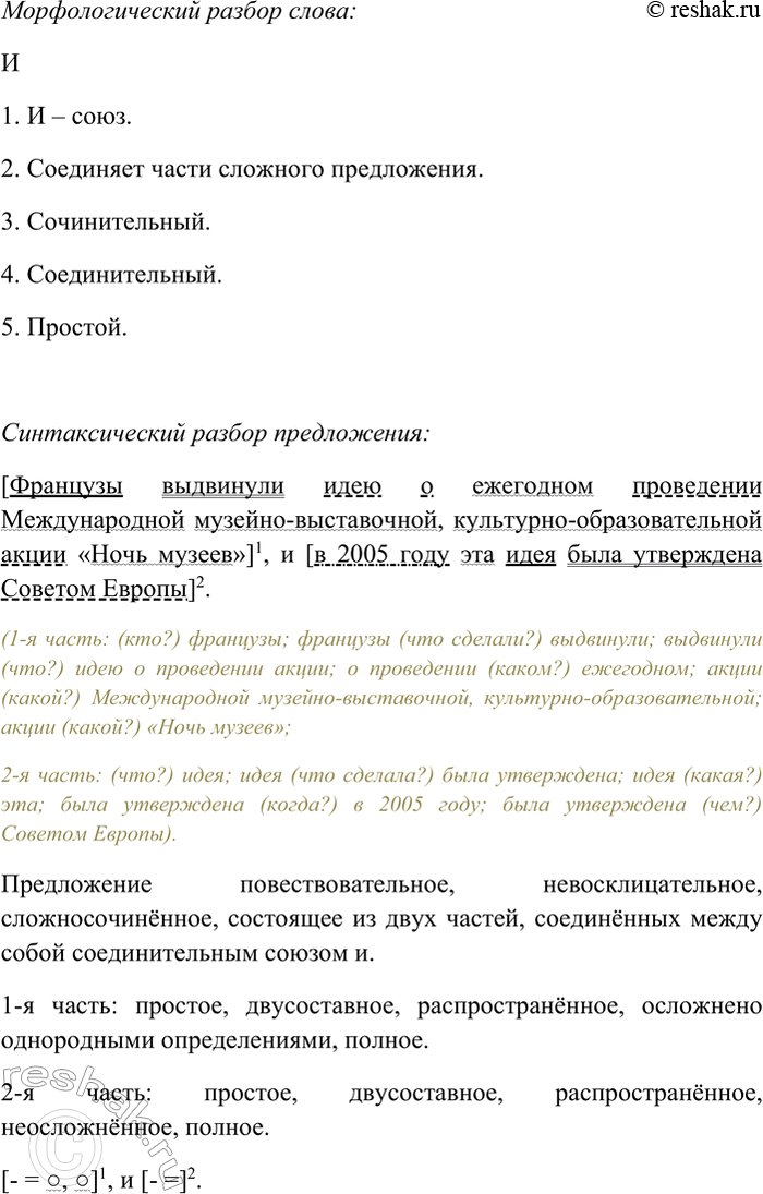 [Французы выдвинули идею о ежегодном проведении Международной музейно-выставочной, культурно-образовательной акции «Ночь музеев»]1, и [в 2005 году эта идея была утверждена Советом Европы]2. (союз и соединяет части сложного предложения)