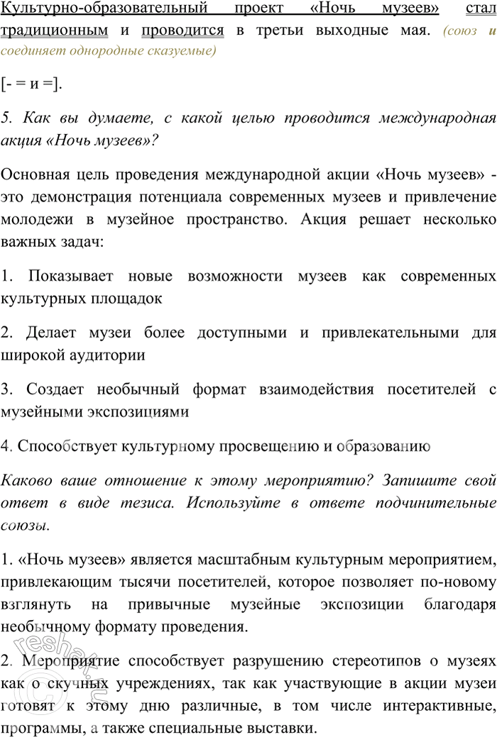 5. Как вы думаете, с какой целью проводится международная акция “Ночь музеев»? Каково ваше отношение к этому мероприятию? Запишите свой ответ в виде тезиса. Используйте в ответе подчинительные союзы.