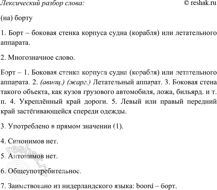 Борт – 1. Боковая стенка корпуса судна (корабля) или летательного аппарата. 2. (авиац.) (жарг.) Летательный аппарат. 3. Боковая стена такого объекта, как кузов грузового автомобиля, ложа, бильярд. и т. п. 4. Укреплённый край дороги. 5. Левый или правый передний край застёгивающейся спереди одежды.