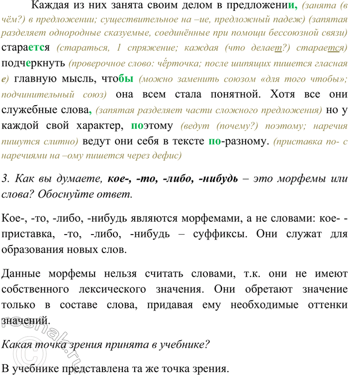 3*. Как вы думаете, кое-, -то. -либо, -нибудь — это морфемы или слова? Обоснуйте ответ. Какая точка зрения принята в учебнике?
