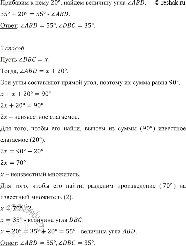 Для того, чтобы его найти, вычтем из суммы (90°) известное слагаемое (20°).