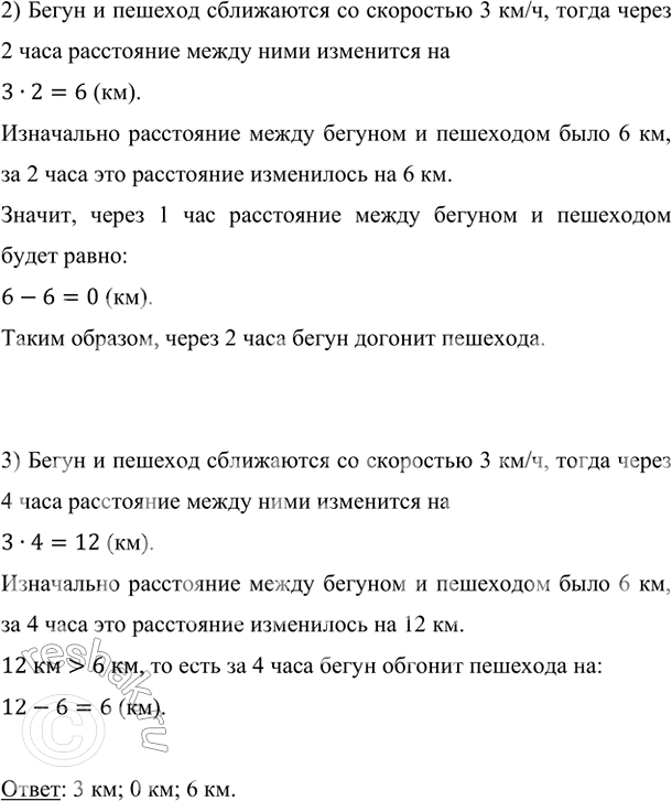 2) Бегун и пешеход сближаются со скоростью 3 км/ч, тогда через 2 часа расстояние между ними изменится на