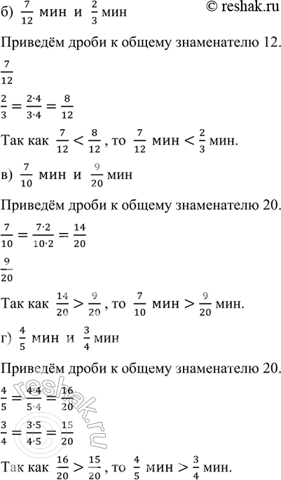 б) 7/12 мин и 2/3 мин; г) 4/5 мин и 3/4 мин.