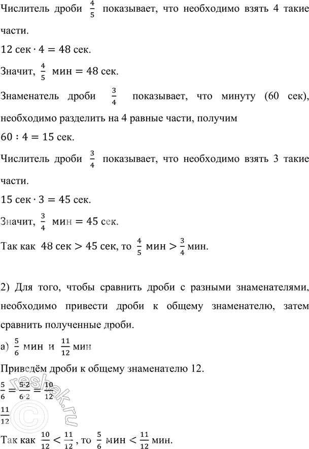 Сравните промежутки времени двумя способами: 1) выразив их в секундах; 2) приведя дроби к общему знаменателю: