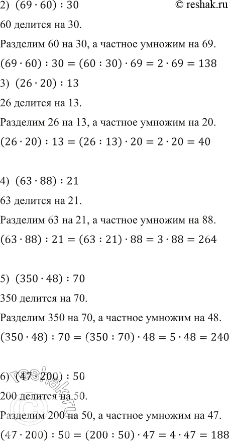 Для того, чтобы произведение разделить на число, можно один из множителей разделить на это число, а потом умножить полученное частное на другое число.