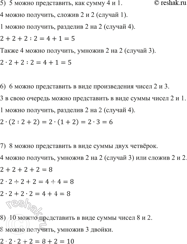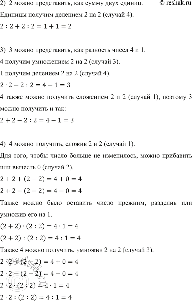 4) 4 можно получить, сложив 2 и 2 (случай 1).