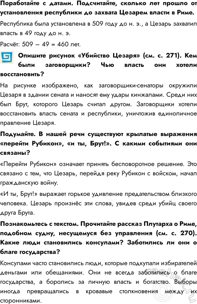 Поработайте с датами. Подсчитайте, сколько лет прошло от установления республики до захвата Цезарем власти в Риме.