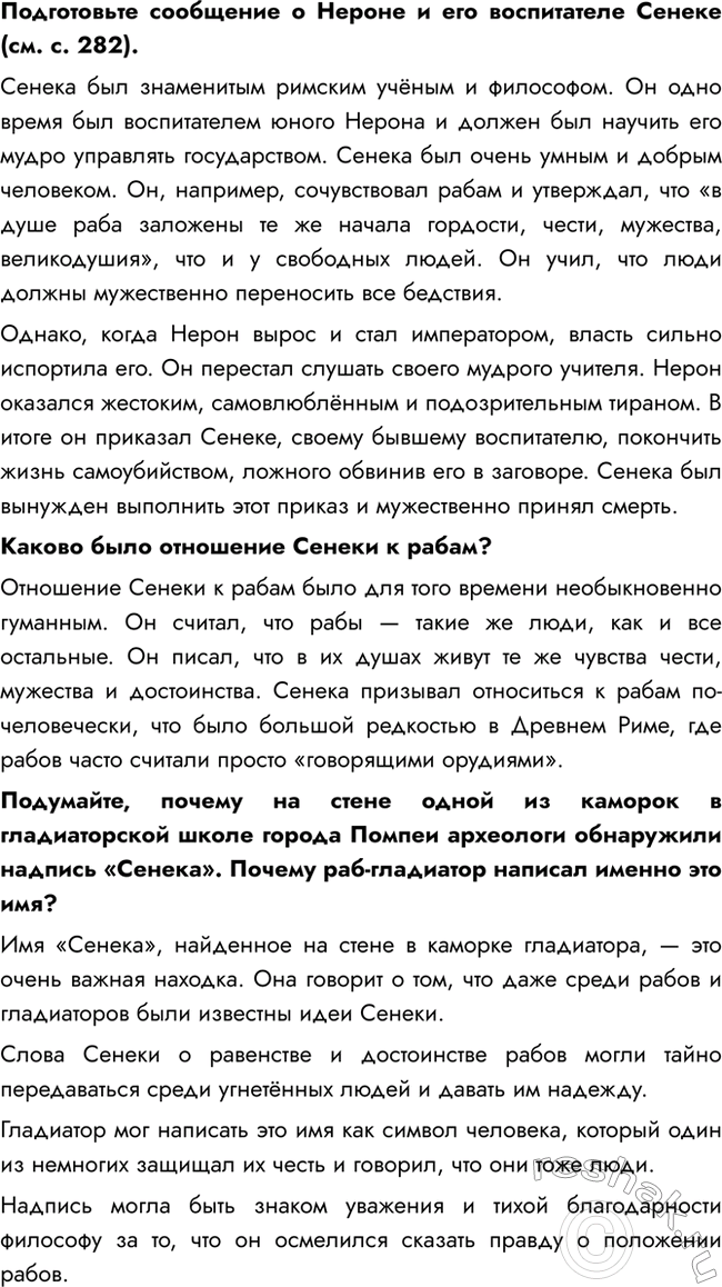 Подготовьте сообщение о Нероне и его воспитателе Сенеке (см. с. 282).