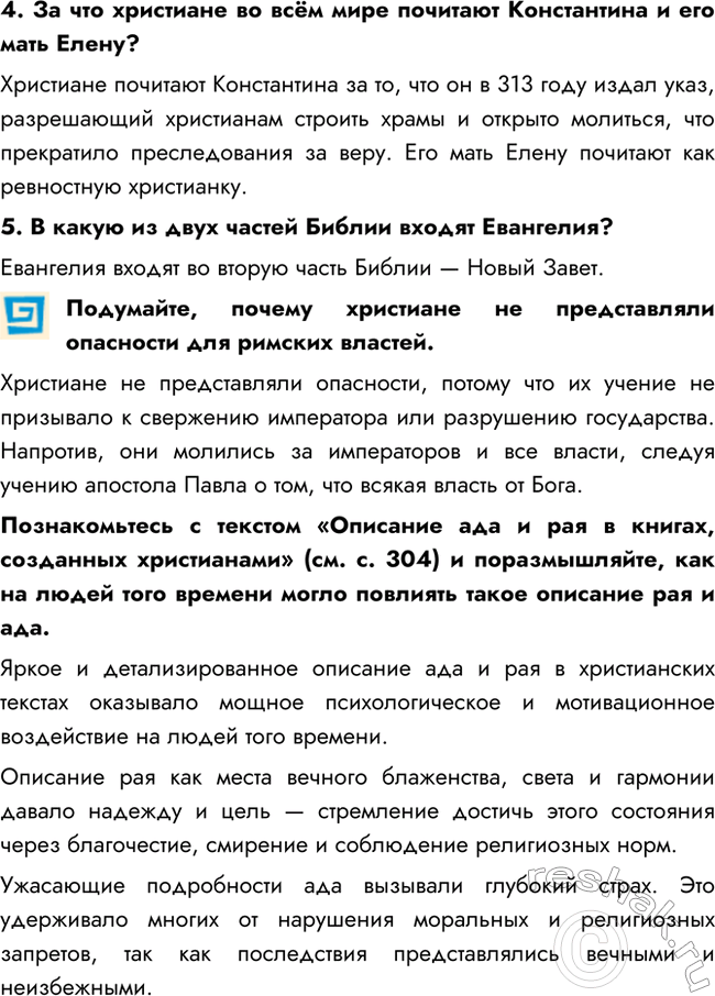 Познакомьтесь с текстом «Описание ада и рая в книгах, созданных христианами» (см. с. 304) и поразмышляйте, как на людей того времени могло повлиять такое описание рая и ада.