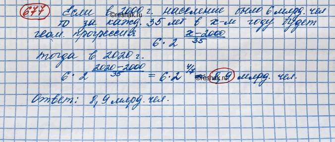 677. Население Земли в 2000 г. составляло 6 млрд человек. Можно считать, что оно удваивается каждые 35 лет.Записать формулу для подсчёта населения нашей планеты Р (в млрд человек) в условном х-м году. Вычислить население Земли к 2020 г.