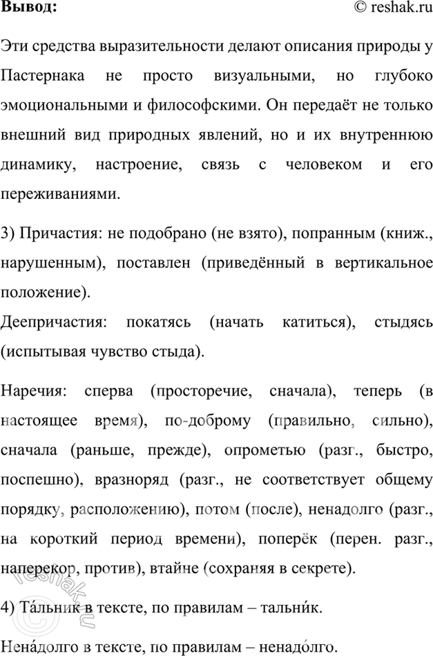3) Назовите все причастия, деепричастия и наречия, которые встретились вам в этих стихотворениях. Уточните их значение, произношение, стилистическую окраску по словарям.