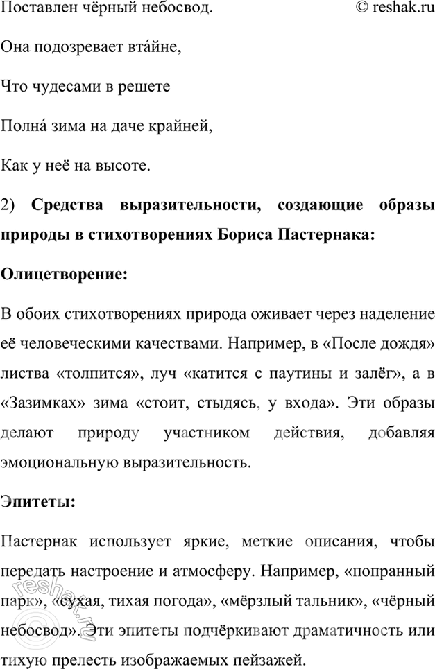 Средства выразительности, создающие образы природы в стихотворениях Бориса Пастернака: