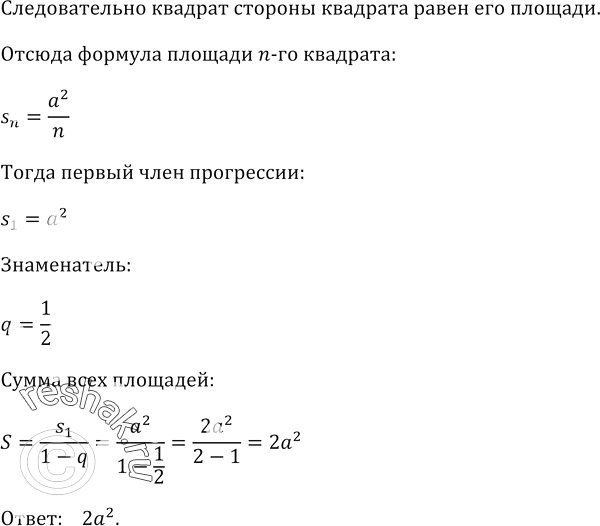 В квадрат со стороной а вписан квадрат, вершинами которого являются середины сторон первого квадрата, во второй квадрат вписан третий, вершинами которого являются середины сторон второго, и т. д. (рис. 105).