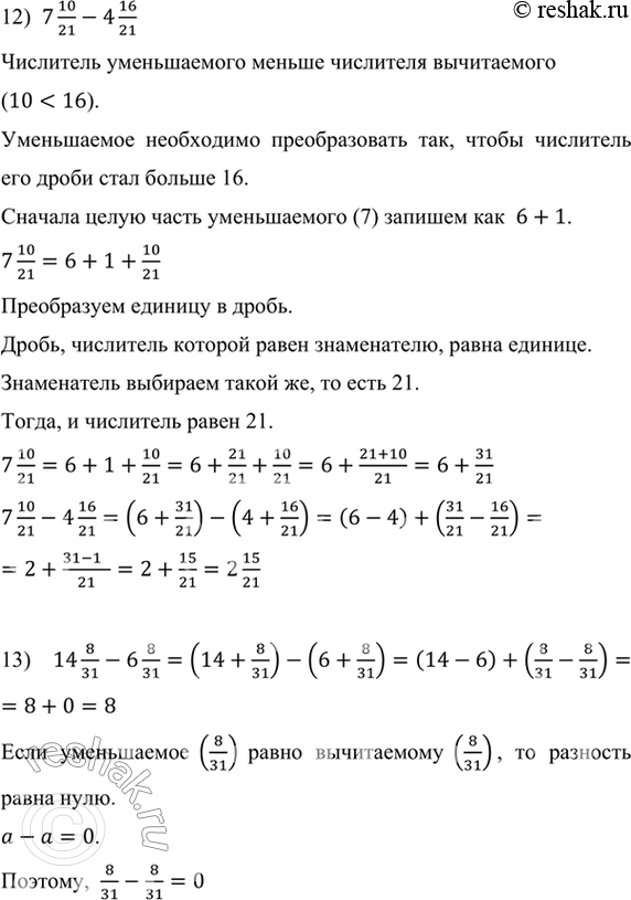 Уменьшаемое необходимо преобразовать так, чтобы числитель его дроби стал больше 12.
