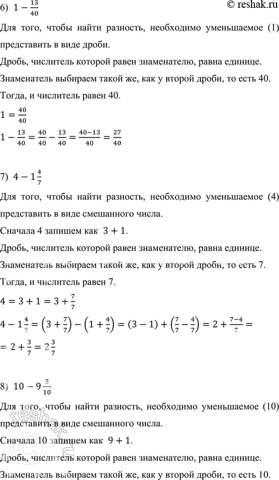 Для того, чтобы найти разность, необходимо уменьшаемое (10) представить в виде смешанного числа.