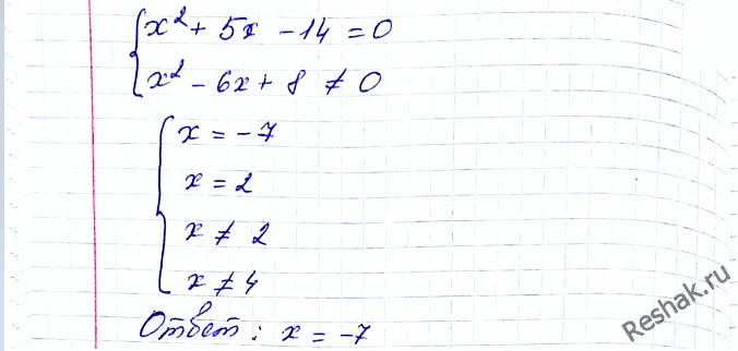 2) (x2 + 5x - 14)/(x2 - 6x + 8) = 0.