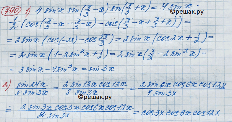 790 1) 4sinxsin(пи/3-x) sin(пи/3 +x) = sin3x;