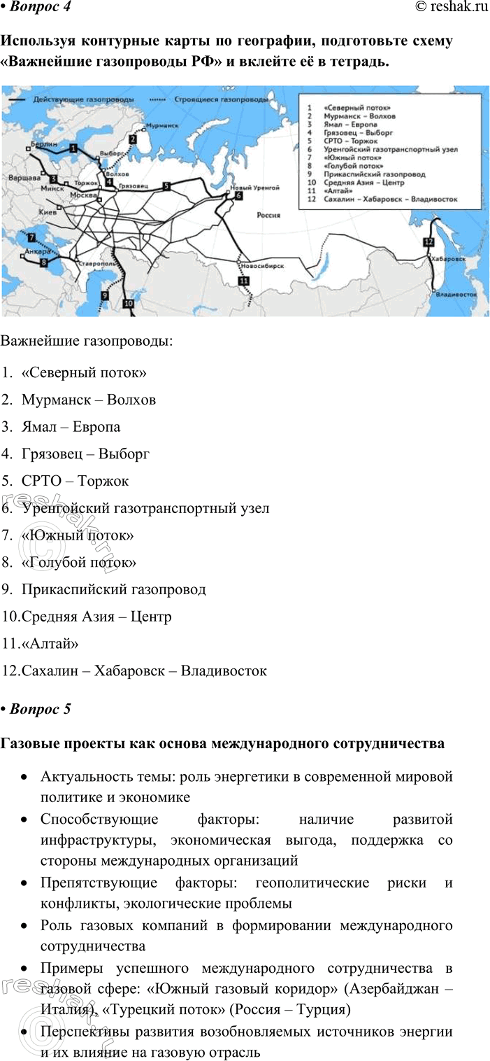 Используя контурные карты по географии, подготовьте схему «Важнейшие газопроводы РФ» и вклейте её в тетрадь.