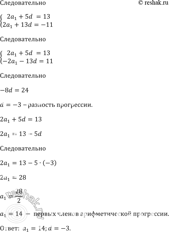 Сумма первых шести членов арифметической прогрессии равна 39, а сумма первых четырнадцати членов равна -77.